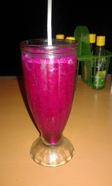 Po krótkich poszukiwaniach trafiłybyśmy do restauracji, przed którą można było sobie wybrać jaki szaszłyk z owoców morza ma trafić na grila. Wybrałyśmy kalmary. Do tego sok ze smoczego owocu. Całość nie była tania, ale w sumie warta swojej ceny (75 000 za szaszłyk + 25 000 za sok). Po kolacji wróciłyśmy do naszego domku brzegiem morza (przez krzaki nie miałyśmy odwagi) i padnięte poszłyśmyy spać.