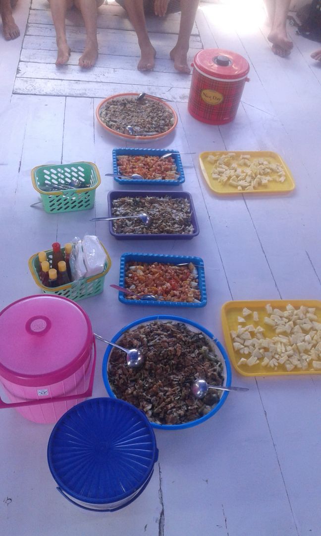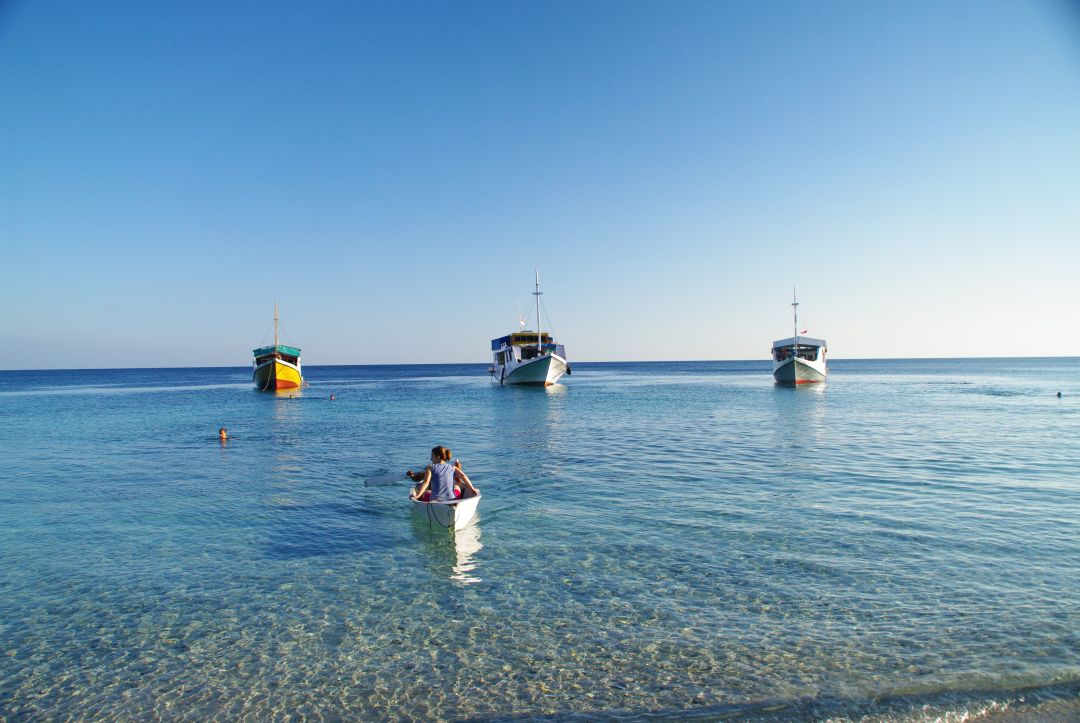 Z daleka nie wyglądała spektakularnie, ale gdy dopłynęliśmy, jej niesamowity kolor stał się wyraźny. Piasek miał wyjątkowy, różowawy odcień, a do tego okolica zachwycała rafami koralowymi. Spędziliśmy tu sporo czasu, pływając i opalając się. Wieczorem mogliśmy się wreszcie wykąpać w słodkiej wodzie – co za ulga po kilku dniach „kociego mycia”!