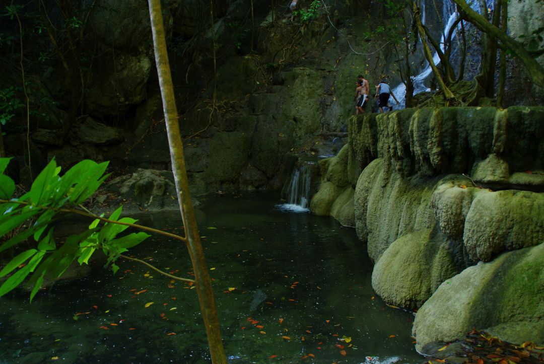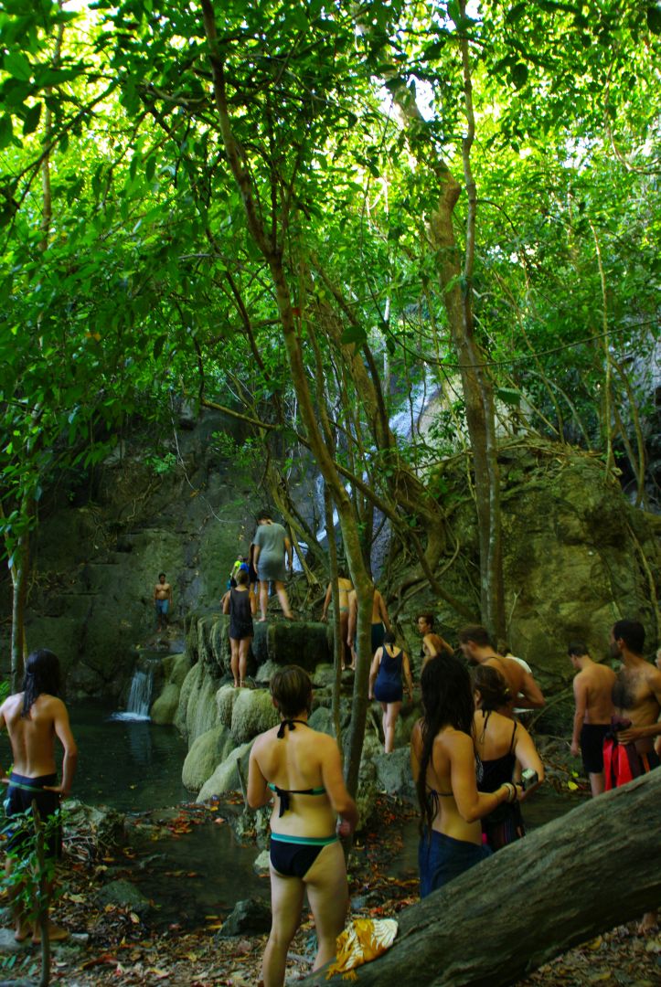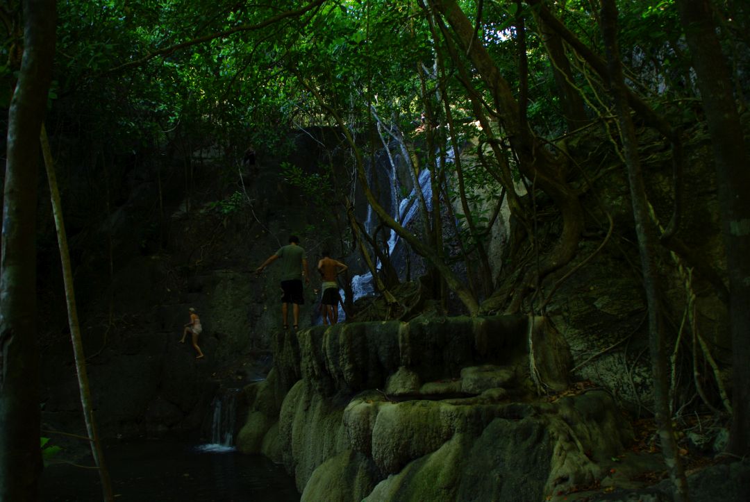 Trekking do wodospadu był łatwy, a sam wodospad – ładny, choć nie zapierał tchu w piersiach. Ominęłam wspinaczkę na skały przy wodospadzie, uznając, że byłoby to dla mnie zbyt ryzykowne. Wróciłyśmy na brzeg morza, razem z grupą innych, którzy nie podjęli tej karkołomnej wspinaczki. Ja trochę posnurkowałam, Angelika popływała i znowu wróciłyśmy na statek. Ja wpław razem z innymi, a Angelika łódką (wygodnicka ;))