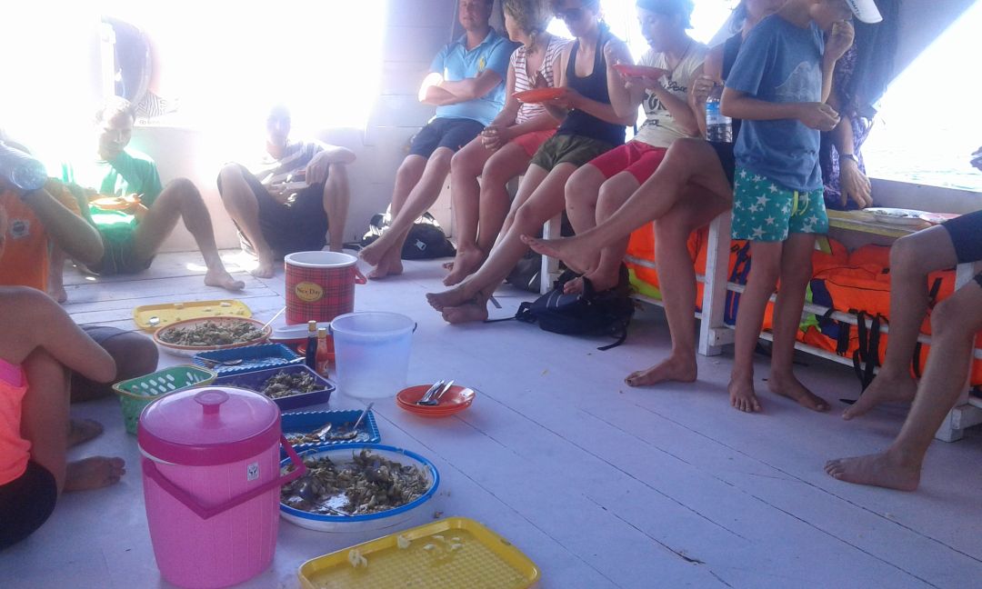 Statek, znowu zatrzymał się w sporej odległości od wyspy. Opiekun kazał nam do pudełka włożyć aparaty i samemu z maską do snurkowania płynąć w stronę wyspy. Na moje nieśmiałe pytanie, a co z butami odpowiedział ze śmiechem, że tam się chodzi boso. No to ok.