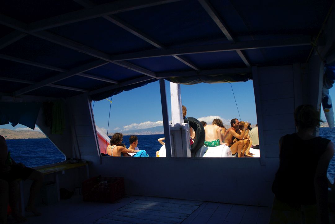 Statek pędził po falach jak szalony, a ja szybko przekonałam się, że cierpię na chorobę morską. Nie byłam jedyna – wielu uczestników rejsu leżało, z bladymi twarzami, na materacach i marzyli o śnie, żeby choć na chwilę nie czuć mdłości. Większość z nas wykupiła miejsca na górnym pokładzie (decku), który nie był podzielony na kajuty.
