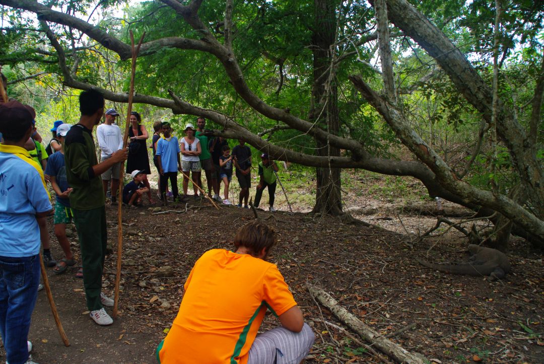 Na Rince było znacznie ciekawiej – zobaczyliśmy pięć waranów, a przewodnicy opowiadali nam mnóstwo ciekawostek o lokalnej faunie i florze. Największą atrakcją było obserwowanie warana, który… chodził – większość po prostu leniwie leżała.