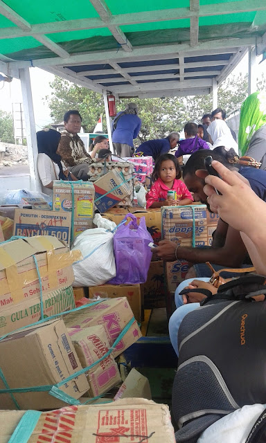 Przystań znalazłyśmy bez problemu, tam zostałyśmy skierowane do poczekalni, a stamtąd już na prom. Oczywiście nie spodziewałyśmy się, że prom wyruszy z portu punktualnie o 9.00. W ciągu tych 3 tygodni nauczyłyśmy się, że w Indonezji czas jest pojęciem względnym. I nie pomyliłyśmy się. Ok. godz. 9 rozpoczął się dopiero załadunek promu i trwał ok. godziny.