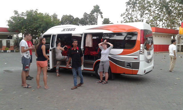 Wycieczkę wykupiłyśmy pierwszego dnia w Yogyakarcie. Zaczęło się dobrze. Kierowca spod hotelu zabrał nas o czasie. Oczywiście, jeździliśmy od hotelu do hotelu zbierając pozostałych chętnych na Bromo, ale to normalka. Uzbierało się nas cały busik. Zostało tylko jedno wolne miejsce na szczęście między mną i Angeliką, więc całą podróż miałyśmy bardziej komfortową niż pozostali.