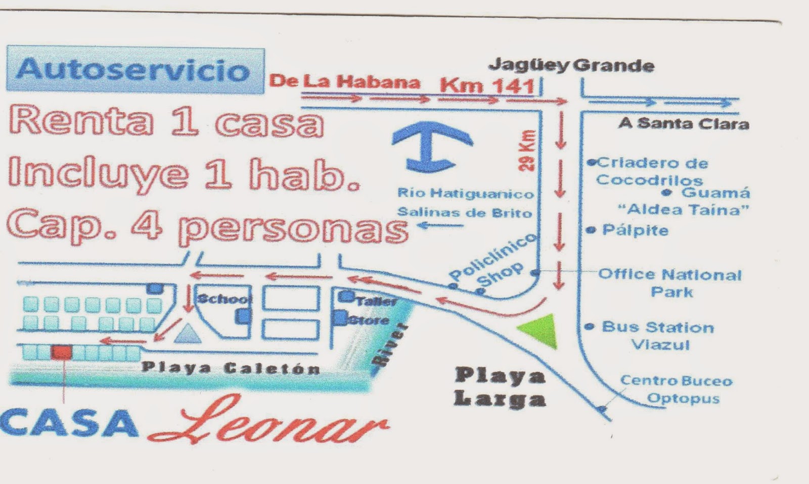 4. LEONAR (20 CUC, śniadanie 3 CUC, obiad 7CUC). Najlepsza casa, jaką miałyśmy na Kubie, znaleziona po krótkich poszukiwaniach, osobny domek z kuchnią, wiec można samemu sobie gotować. Przemili właściciele, prowadzą tą case od roku, więc jeszcze nie są skażeni naciąganiem. Wspaniale obiady. Bardzo dobre śniadania.