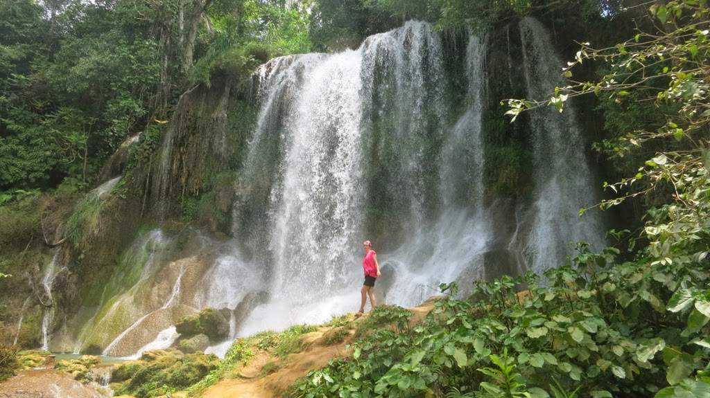 El Nicho to była wisienka na torcie dzisiejszego dnia. Przepiękne widoki i wspaniale wodospady. Wstęp 9 CUC. W nieckach wodospadów można popływać. Cala trasa ma ok. 2 km. Najbardziej podobał nam się największy wodospad, ale Agnieszka zdecydowała wykąpać się w kolejnym. I tam nas złapał deszcz. Spędziłyśmy ponad godzinę w malutkiej jaskini. Po zejściu na parking okazało się, ze jesteśmy jednymi z ostatnich osób w parku i już wysyłano po nas człowieka, który miał nas szukać. Nas i dwóch Hiszpanów, którzy czekali aż przestanie padać w jaskini obok.
