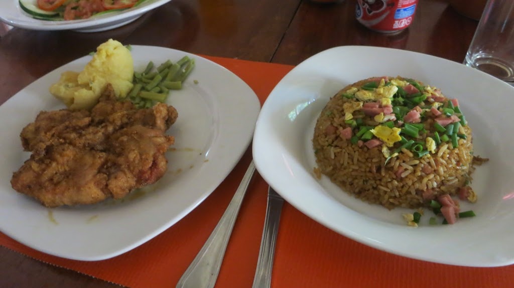 Wyruszyłyśmy na zwiedzanie miasta. Wzięłyśmy rowerową taksówkę i pan nas obwiózł po centrum Camanguey. W naszym planie na początku miałyśmy jedzenie. Po krótkich poszukiwaniach znalazłyśmy paladar czyli restauracje dla miejscowych. Zamówiłyśmy kurczaka z ryżem i sałatką. Smakowało nam. No i zapłaciłyśmy ok 130 CUP za dwie osoby czyli jakieś 5 CUC.