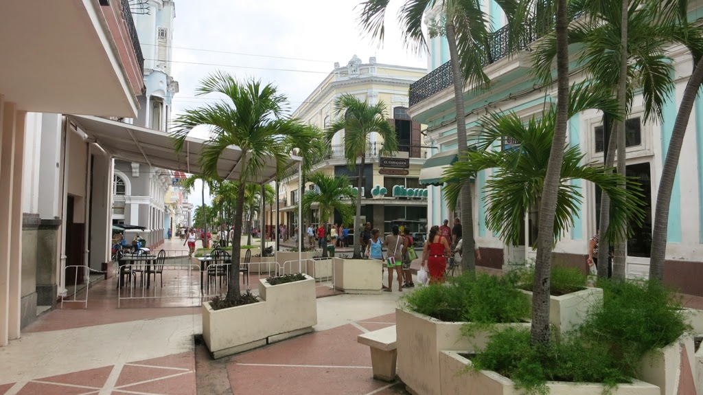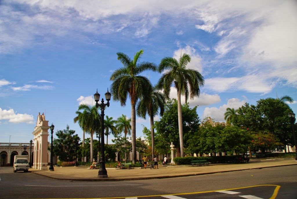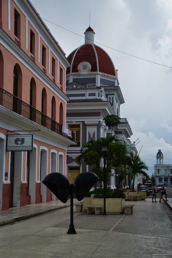 Po jedzeniu poszłyśmy na spacer po Cienfuegos. Bulwarem doszłyśmy do Parque Marti, który ze względu na znaczenie stojących tam budynków, został uznany za zabytek narodowy. Spacerowałyśmy sobie dookoła placu, weszłyśmy do fajnej galerii, gdzie można kupić ręcznie robione pierdółki. Posiedziałyśmy przez chwile na ławeczce.