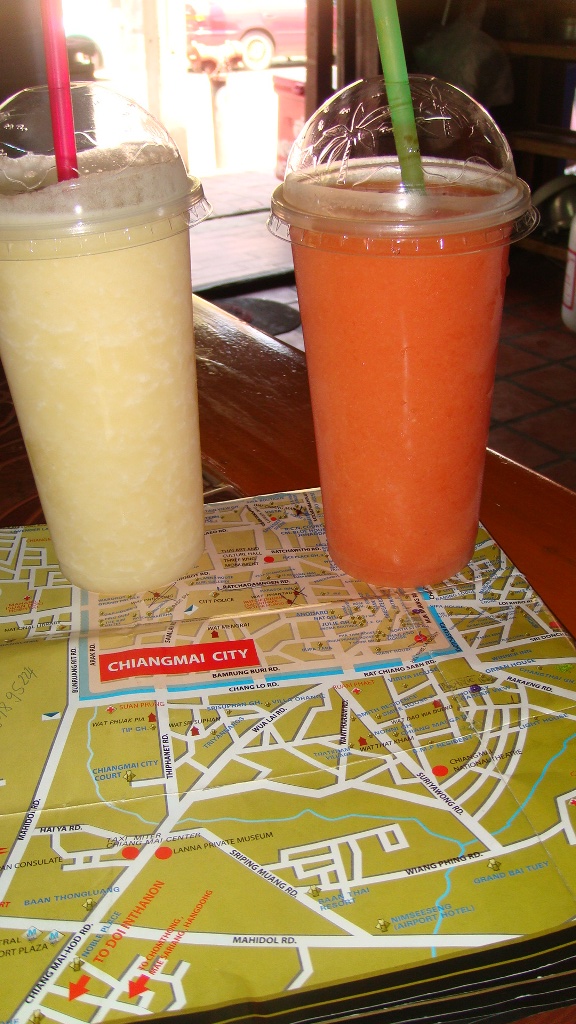 W Chang Mai odkryłyśmy shakei owocowe i delektowałyśmy się nimi przez cały Laos. Gdy byłyśmy głodne ratowało nas jedzenie na patyku zwane przez nas szaszłykami.