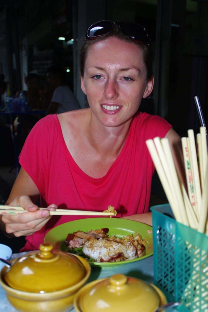 nasze pierwsze jedzenie w Tajlandii. Od razu trafiłyśmy na pyszną zupę. No i Agnieszka pierwszy raz posługiwała się pałeczkami