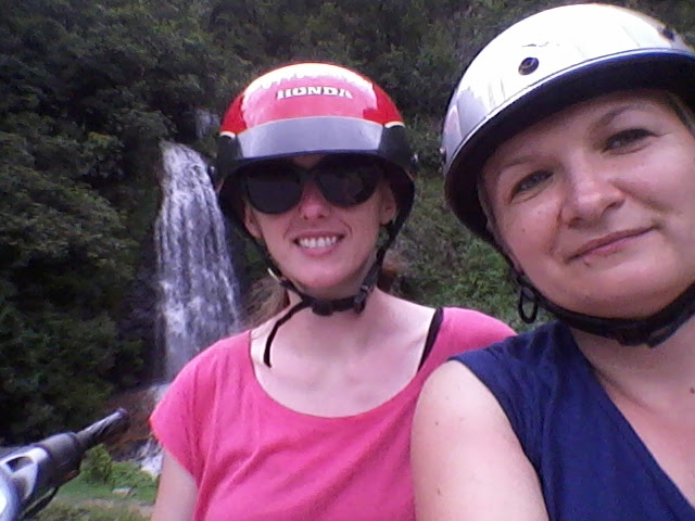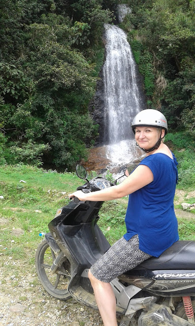 Drugi dzień rozpoczęłyśmy od śniadania, a następnie wypożyczyłyśmy skuter w pobliżu stadionu. I znowu sytuacja się powtórzyła. Pożyczamy skuter, wypożyczający jest miły i sympatyczny do momentu aż się dowiedział, że to jest nasz pierwszy raz. Ale tym razem nie odpuściłyśmy. Dostałyśmy skuter nie pierwszej młodości i znowu Agnieszka ruszała jako pierwsza. zrobiła rundę wokół stadionu, wróciła uśmiechnięta i powiedziała, że to łatwizna. Potem, już samodzielnie, pojechała zatankować i następnie spotkałyśmy się na stadionie. I fakt, jazda na skuterze jest łatwa 🙂 Zrobiłyśmy jeszcze po parę kółek i zdecydowałyśmy się na wycieczkę na wodospady Silver oraz przełęcz Tram Ton Pas (Heaven’s Gate) czyli jakieś 15 km od Sapa.