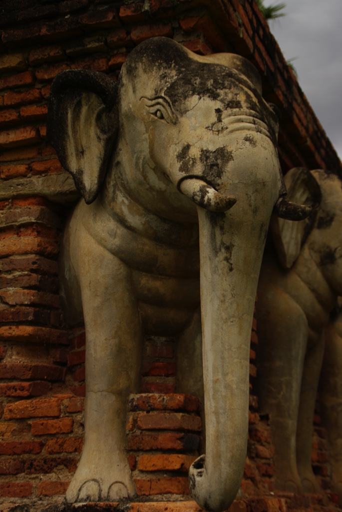 Został nam ostatni Wat, którego wcześniej nie mogłyśmy znaleźć. Tym razem drogę do niego znalazłyśmy, znalazłyśmy nawet słonie w Wat Sorasak. Ale gdy ruszyłyśmy w stronę naszego zagubionego Watu lunęło. Prawdziwe oberwanie chmury. Wiec szybki nawrot i pojechałyśmy już oddać rowery.