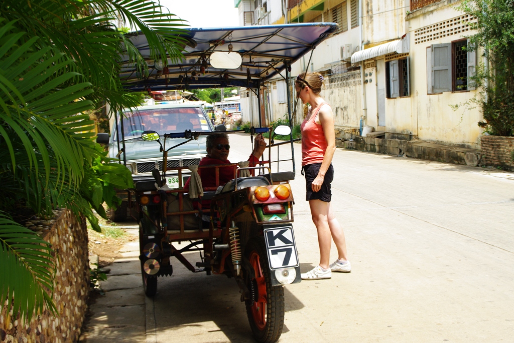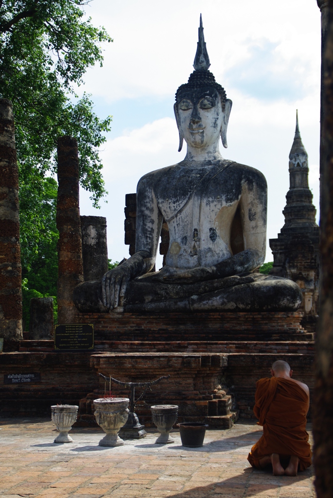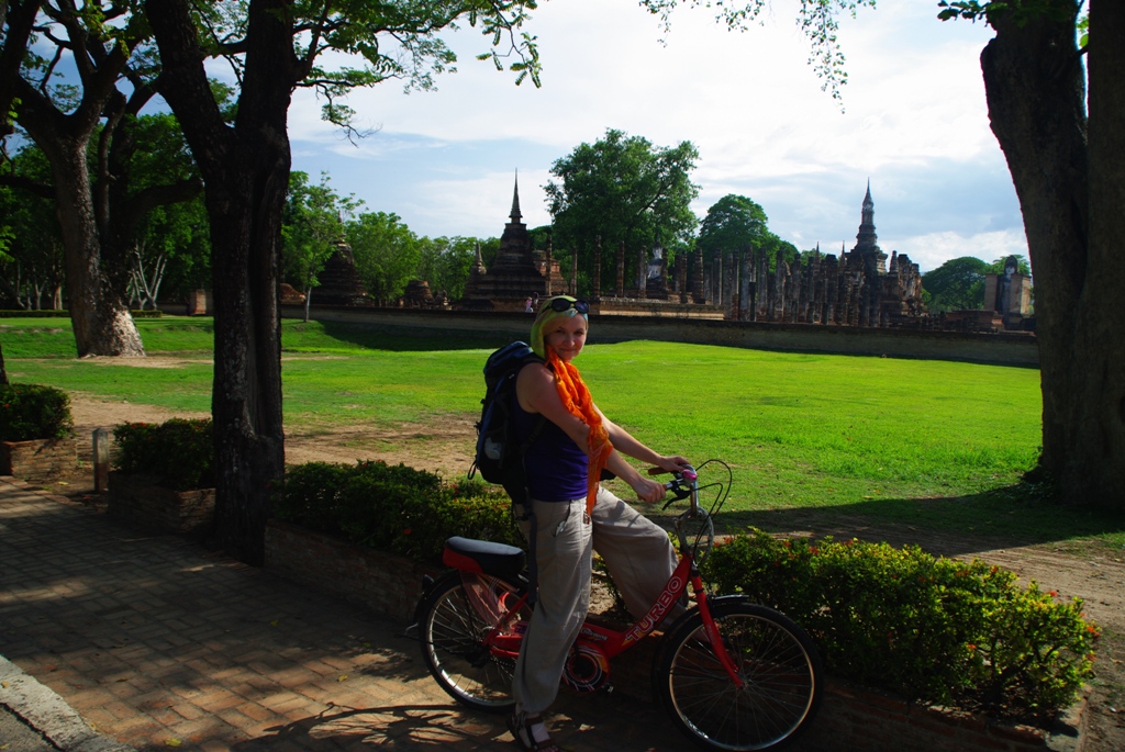 Szukamy tuk-tuka, ale ceny wydały nam się przesadzone, wiec postanowiłyśmy pojechać na dworzec autobusowy i sprawdzić godziny odjazdu i ceny autobusu do Chang Mai. Tym razem złapałysmy tuk-tuka z sympatycznym kierowca, wiec poprosiłyśmy, żeby poczekał na nas i potem nas podwiózł na Stare Miasto Sukhothai. Sprawdziłyśmy odjazdy i ruszyłyśmy na zwiedzanie.