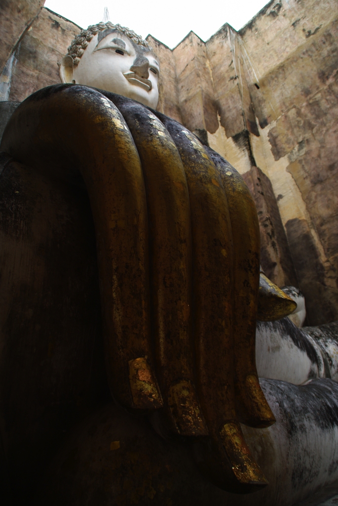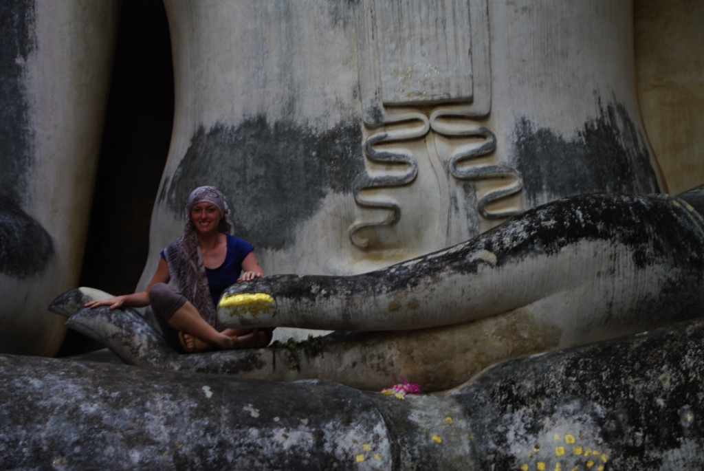 Potem ruszyłyśmy do wat Saphan Hin(100 BHT) z olbrzymim posagiem Buddy, gdzie Aga postanowiła sobie zrobić zdjęcie siedząc na dłoni Buddy. To była najszybsza wspinaczka i najszybsze zdjęcia i oczywiście najszybsze zejście w historii świata. Całość zajęła może 30 sek. Jeśli Budda jej nie pokaże za tą profanacje, to…. Chociaż patrząc co mi się przydarza (a pisząc tego posta jesteśmy już na 11 dniu), to ona profanuje, a na mnie mszczą się bogowie.