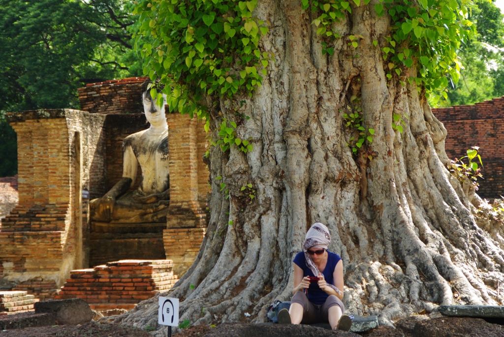 To był naprawdę bardzo przyjemny dzień. Park Historyczny (110BHT) jest bardzo duży, co chwile mija się jakieś Waty czy to mniejsze czy większe. Największy i najciekawszy, to Wat Mahathat (ja go nazwalam Manhatan) z wieloma posagami Buddy.