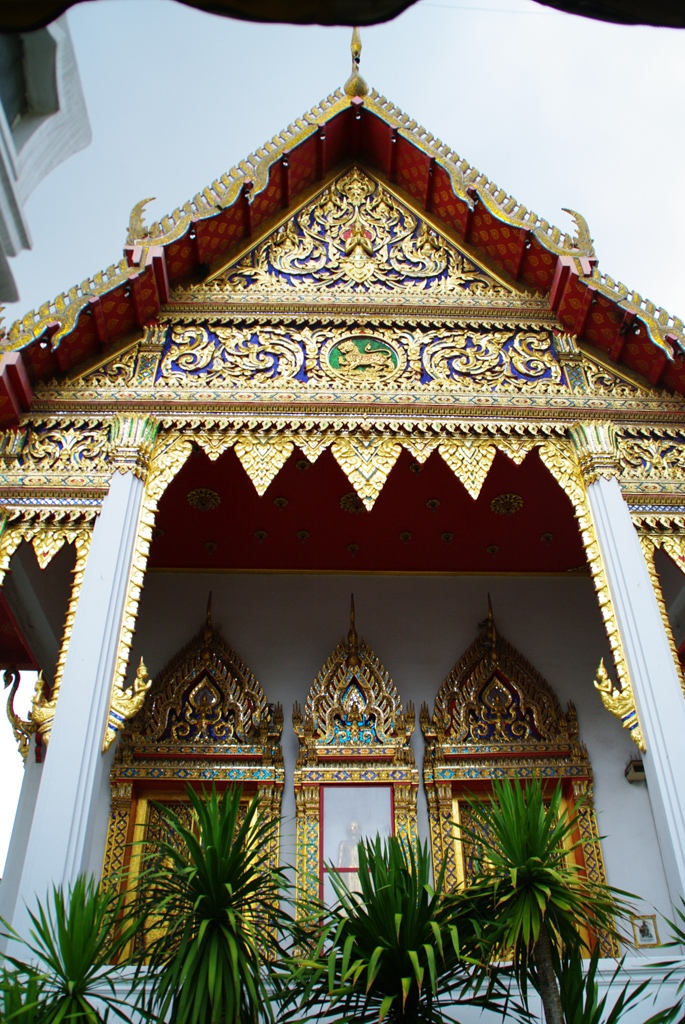 Kolejnym Watem, jaki zobaczyłyśmy, to Wat Suwannaram, a w nim mnicha udzielającego błogosławieństwa. Każdy mógł podejść i posłuchać błogosławieństwa. Jako, ze mój tajski składa się tylko z czterech slow (dzień dobry, dziękuje, tak, nie), to nie skorzystałam. Sama świątynia bardzo ciekawa, z ciekawymi malowidłami i złotym posagiem Buddy.
