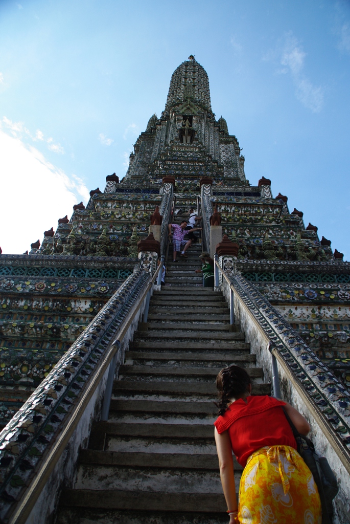 Po zakwaterowaniu, a mieszkamy u sympatycznego francuza o imieniu Remi, ruszamy na miasto. Na pierwszy ogień poszedł Wat Arun. Prześliczna świątynia zbudowana na cześć hinduskiego boga świtu Arun, z niesamowitymi ceramicznymi detalami.
